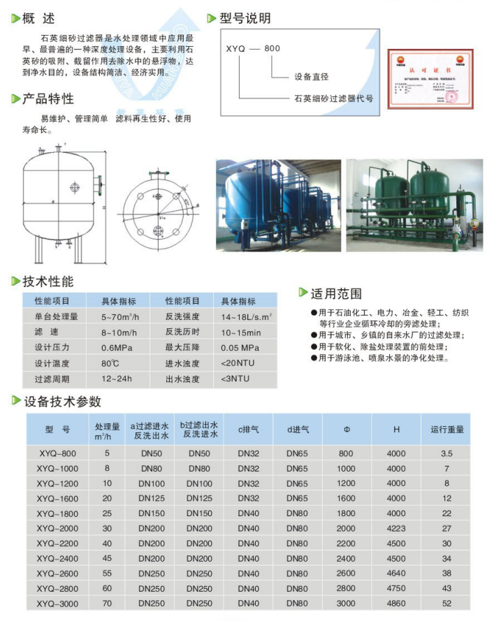 XYQ型石英細(xì)砂過(guò)濾器